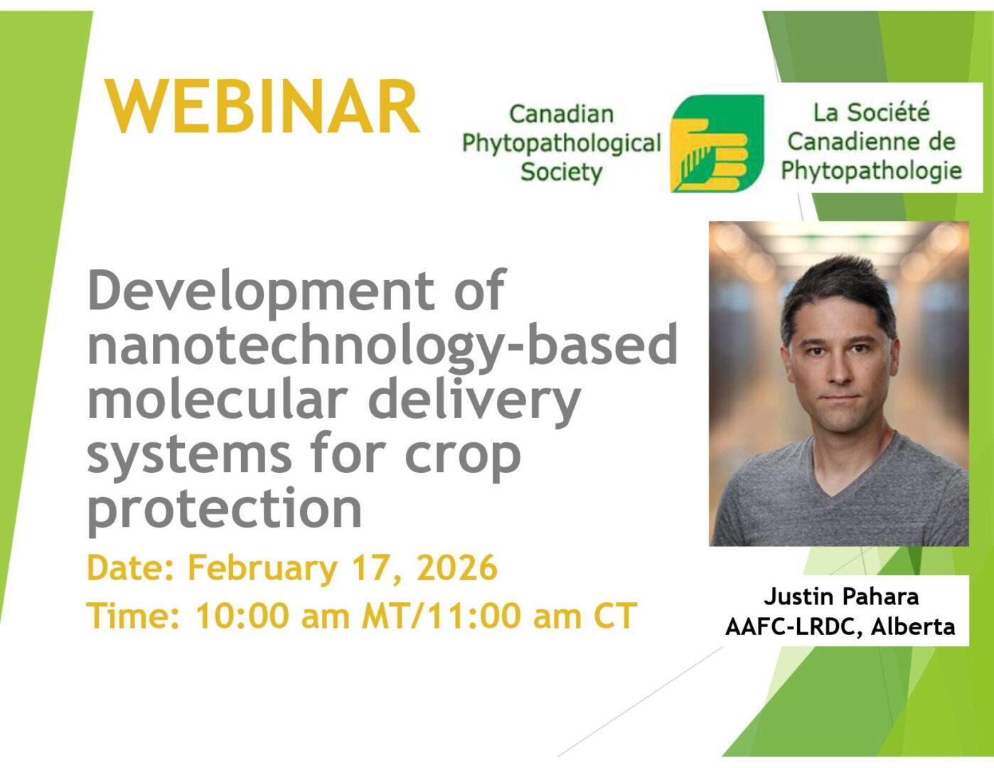Speaker: Justin Pahara heads the AAFC NanoLab, an applied science and engineering lab in Agriculture and Agri-Food Canada’s Lethbridge Research and Development Centre in Alberta. The NanoLab is de-risking important technology so to support development and commercialization of critical next generation crop treatment technology that producers need. Justin holds a B.Sc. (immunology and infection) and M.Sc. (cell biology) from the University of Alberta and a Ph.D. (chemical engineering and biotechnology) from the University of Cambridge.